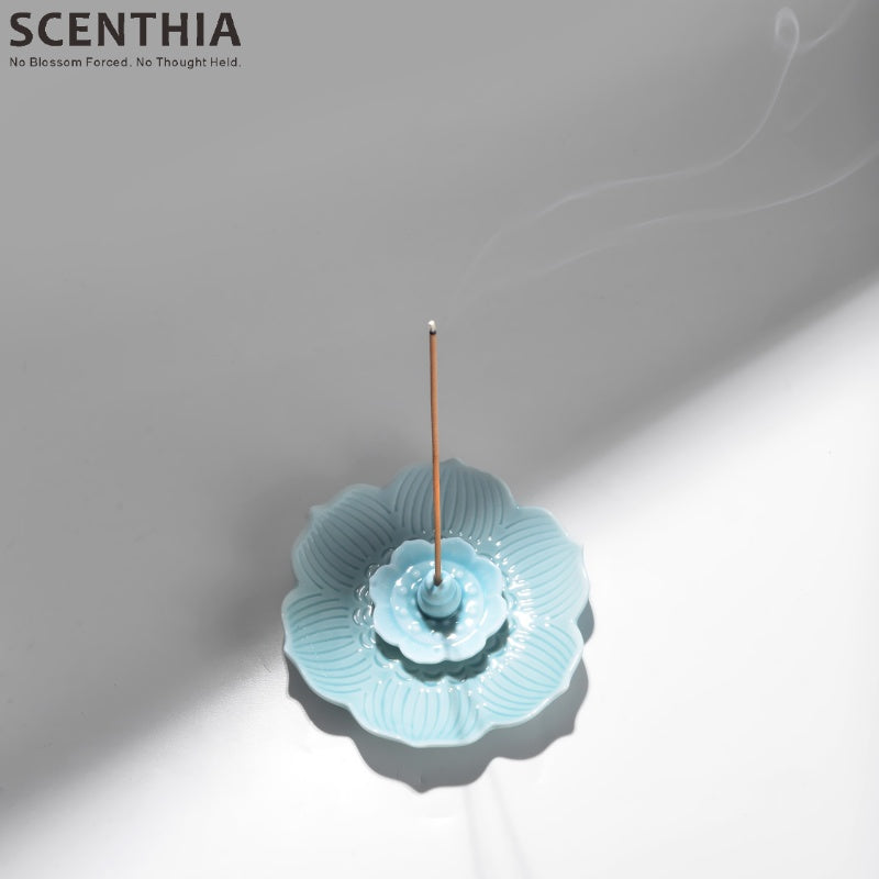 SCENTHIA Ceramic Lotus Incense Holder – Celadon Home Decor & Fragrance Accessory